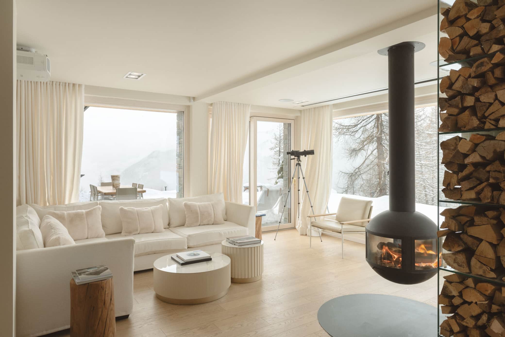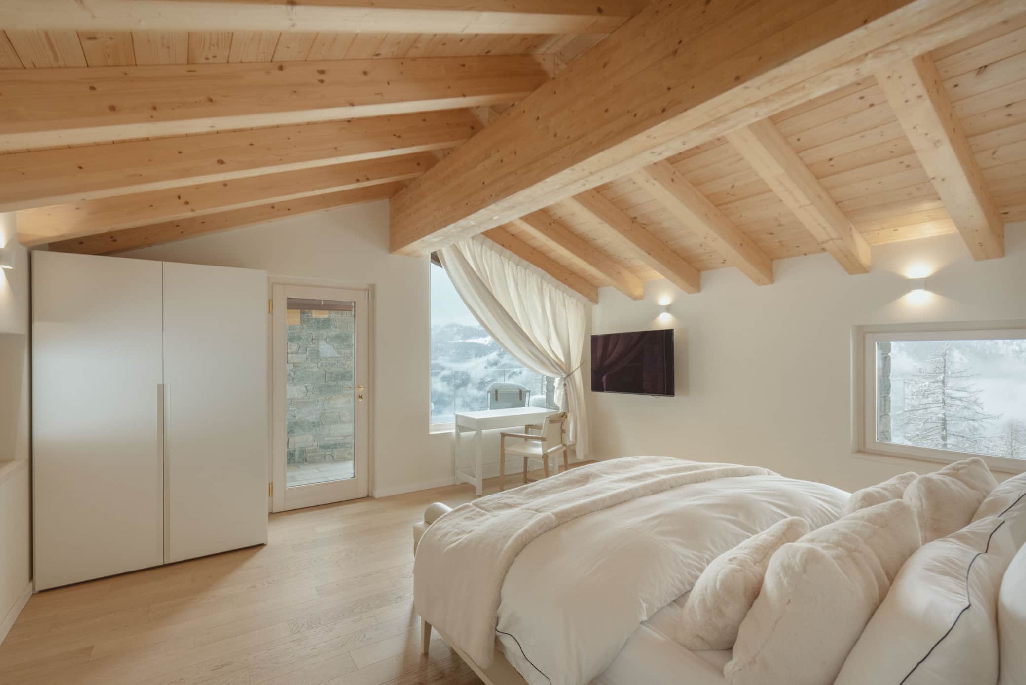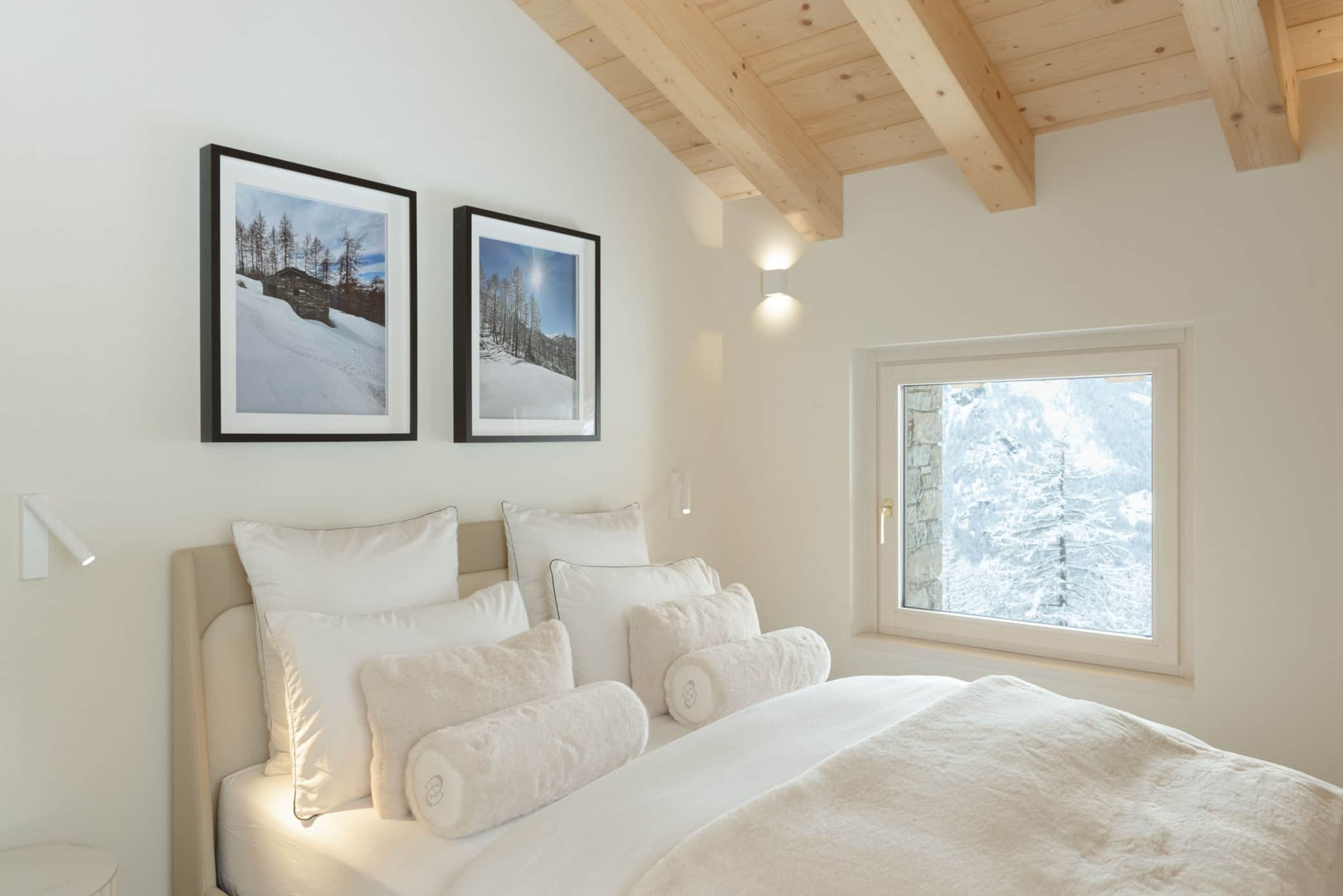 Our luxury chalet boasts three sophisticated bedrooms, each with its own designer bathroom, and a grand living room featuring a statement fireplace. For ultimate relaxation, indulge in our premium wellness area complete with hammam, sauna, and a spectacular outdoor jacuzzi offering panoramic Alpine vistas.