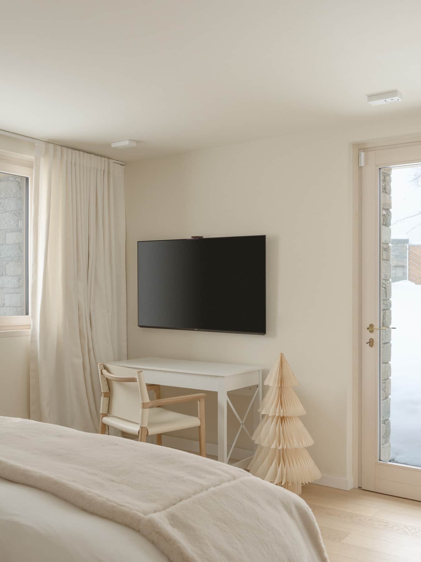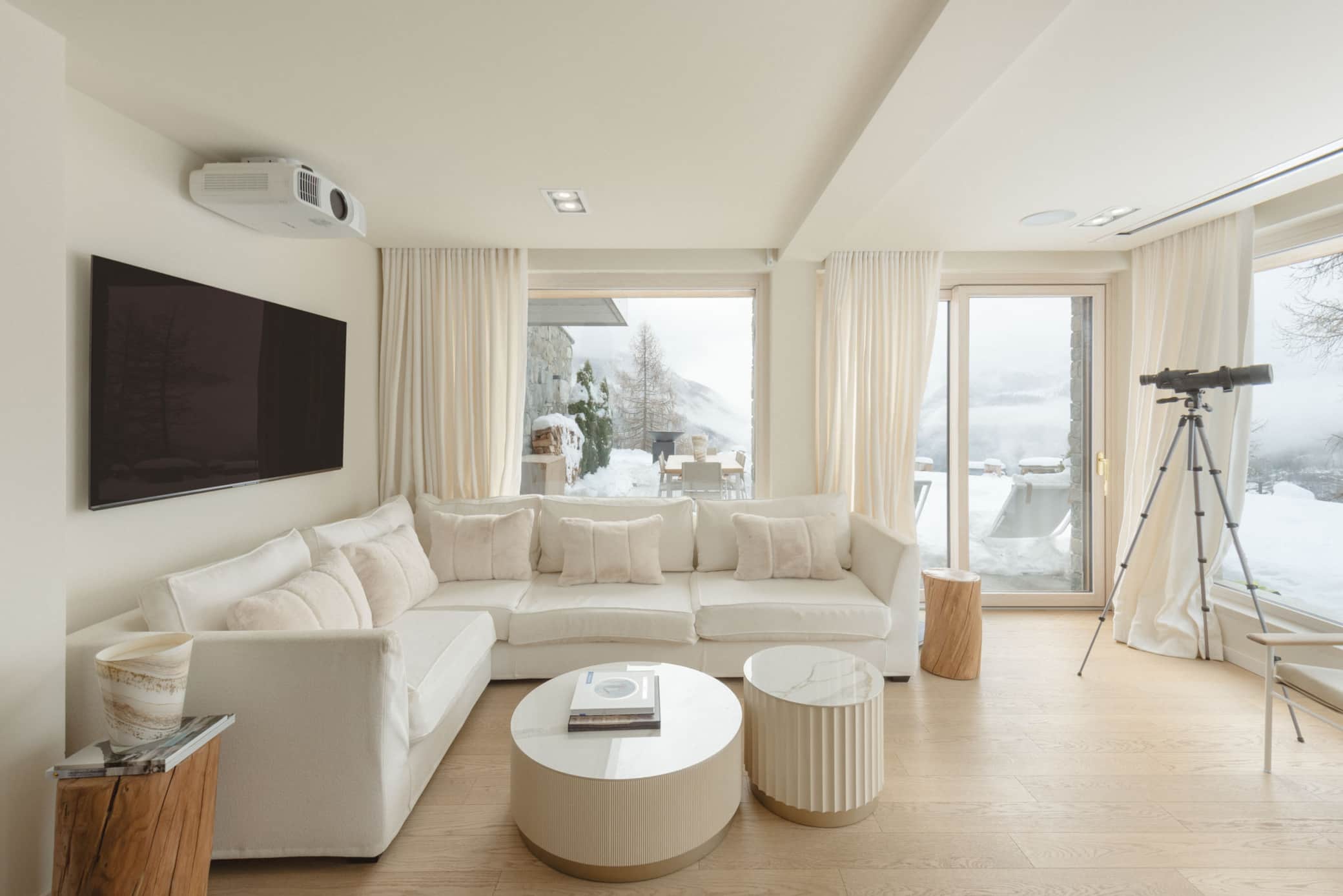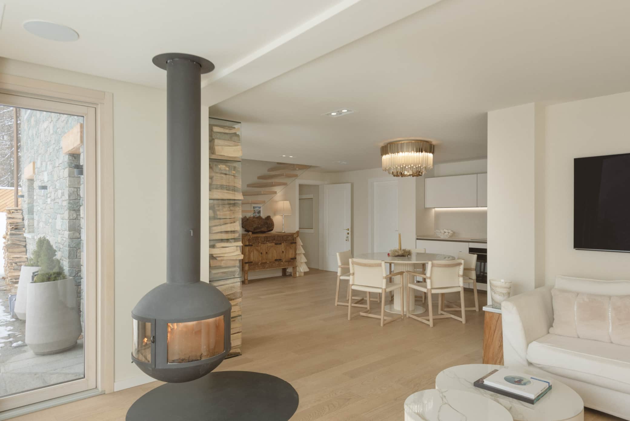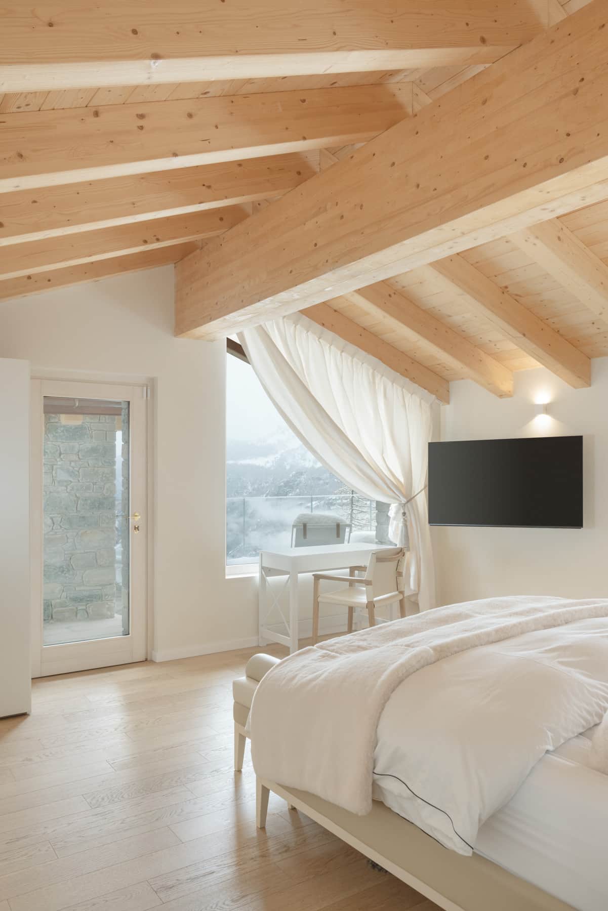 Our luxury chalet boasts three sophisticated bedrooms, each with its own designer bathroom, and a grand living room featuring a statement fireplace. For ultimate relaxation, indulge in our premium wellness area complete with hammam, sauna, and a spectacular outdoor jacuzzi offering panoramic Alpine vistas.