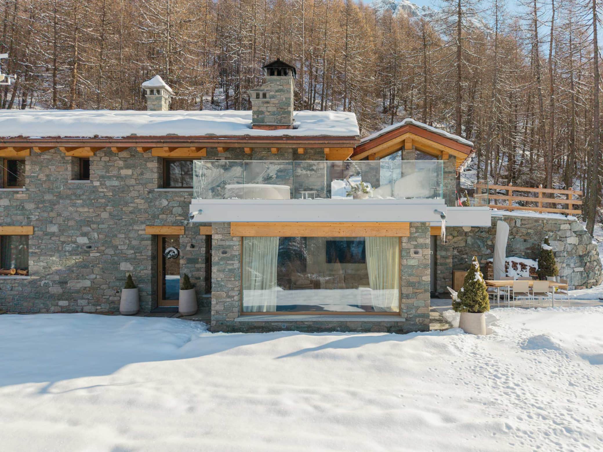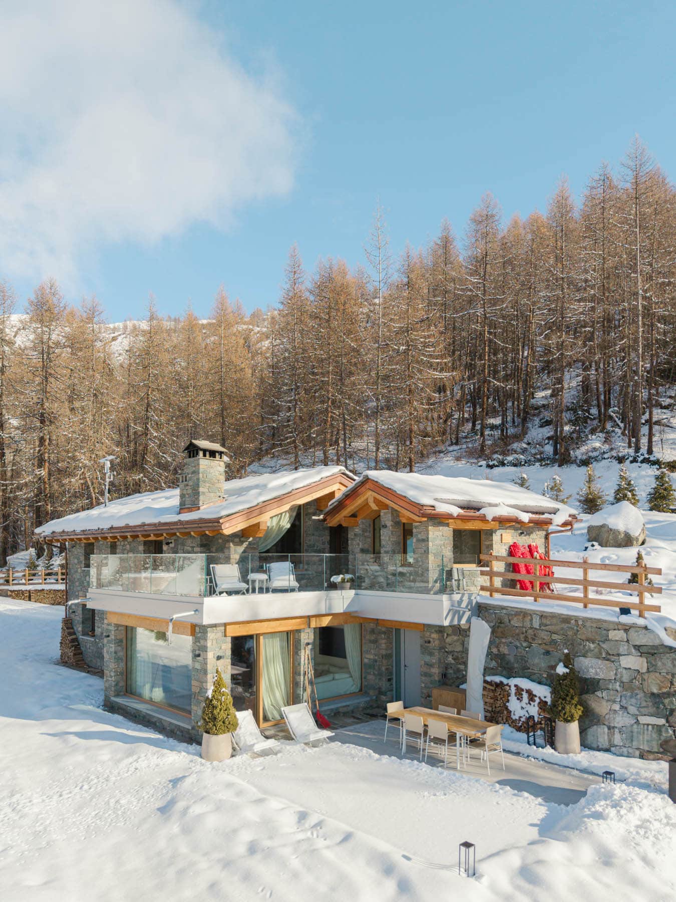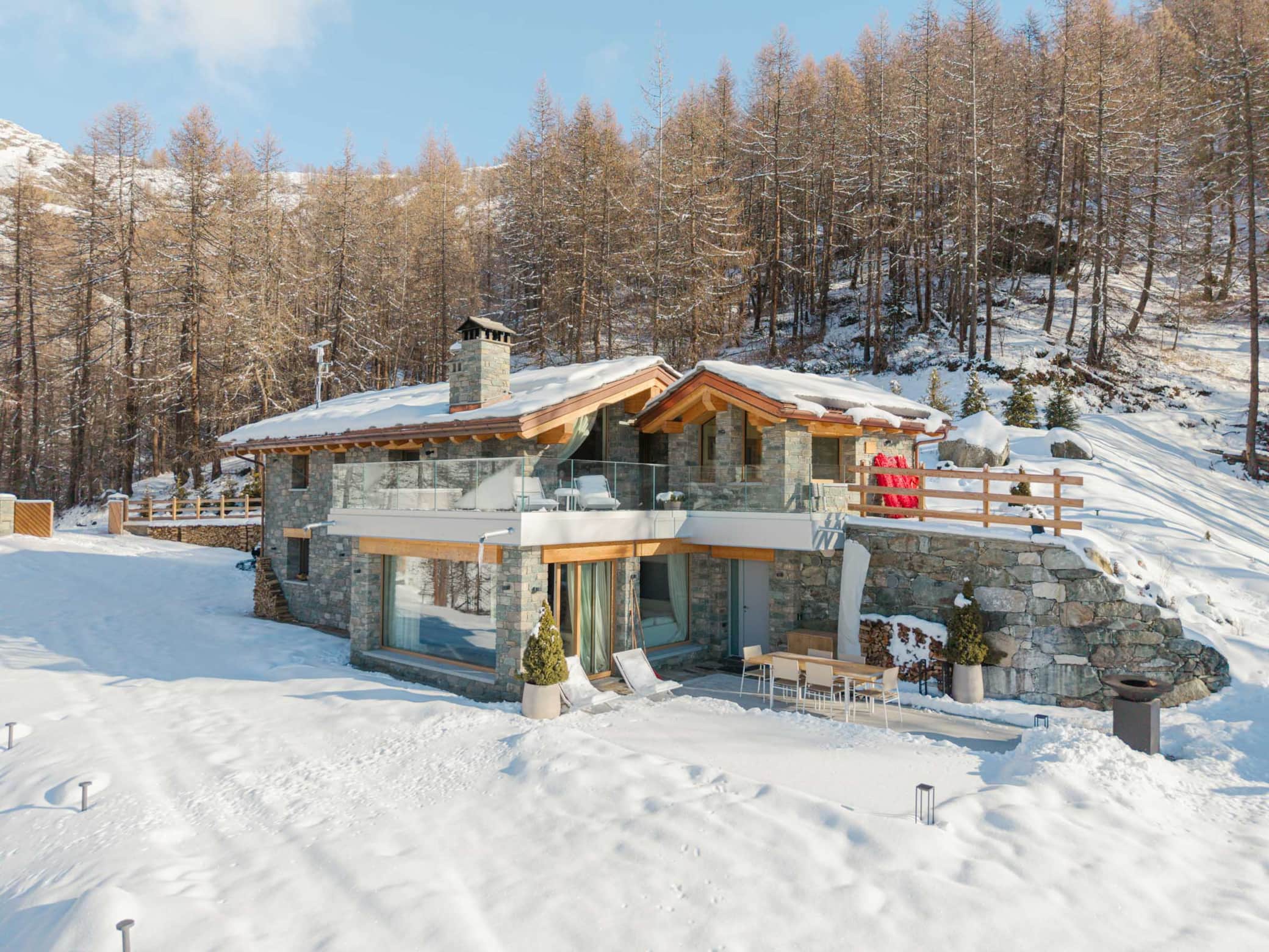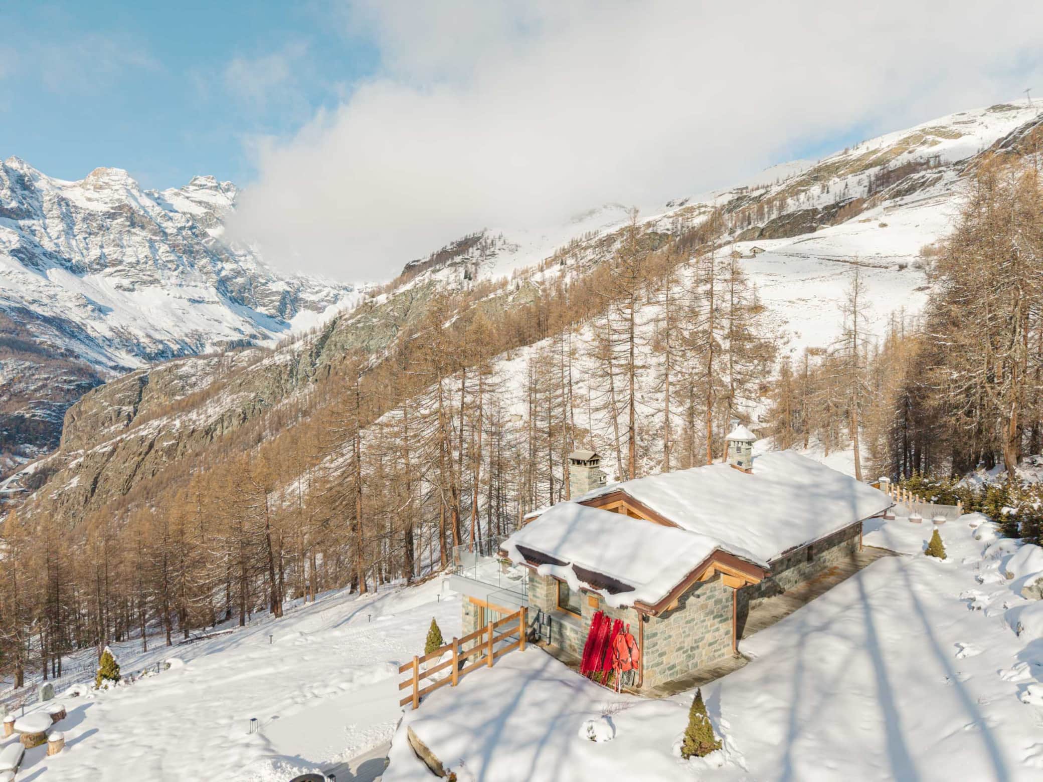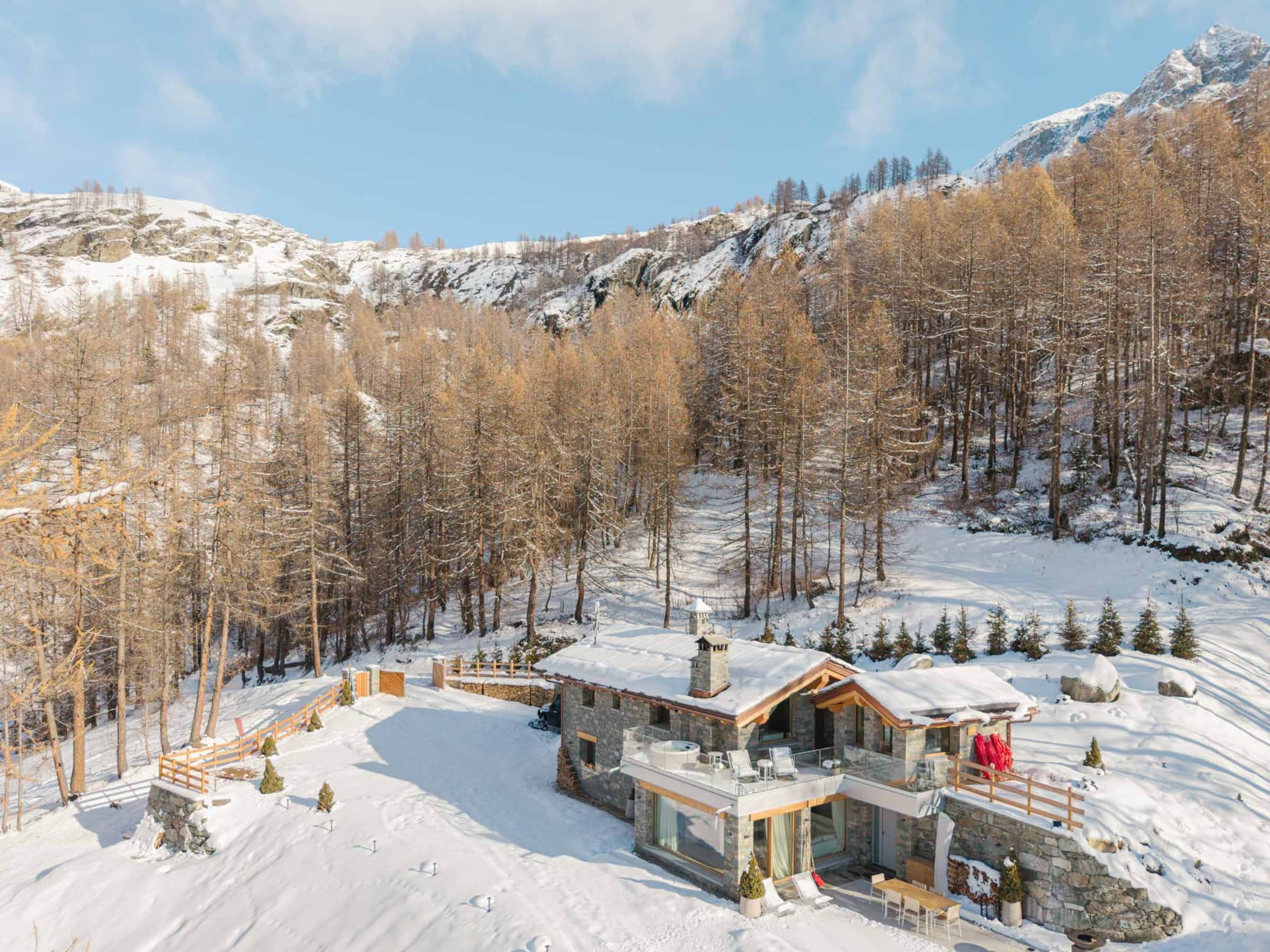 Welcome to "Le Paradis Secret", a luxurious mountain retreat perched at 2000m altitude in the prestigious Aosta Valley, offering breathtaking views of the Matterhorn. This 130m² high-end chalet, recently transformed through meticulous renovation, combines exclusive Alpine elegance with state-of-the-art amenities. Situated directly on the ski slopes, it provides an unparalleled private sanctuary for discerning guests.